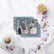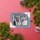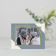 Unique, classe, tendance, joli et décoratif Noël de Noël et Bonne Année Carte de voeux. Avec place pour customiser ou personnaliser avec une photo, nom de famille ou noms, et le texte de votre choix. Motif festif d'étoiles scintillantes sur un arrière - plan gris ardoise bleu et blanc. Et une saison personnalisable saluant poème sur le côté arrière de la carte, y compris votre adresse de retour, ville, code postal et état.