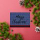 Carte Postale De Vacances En Aluminium Étoiles et bandes Argent Script Joyeux Noël