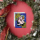 Carte Postale De Vacances En Aluminium Festival de Noël Ribbon Photo Rouge Bleu