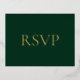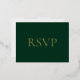 Sur un arrière - plan vert de forêt solide, ce rsvp de mariage (carte de réponse) se compose d'un thème élégant mais minimaliste. Le dos de la carte est vert forêt avec un vrai papier arrière - plan (or, argent ou or rose).