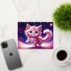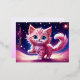 Carte Postale De Vacances En Aluminium Imaginaire rose chaton fluffy bleu vif yeux art
