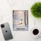 Cette carte postale de vacances enchanteresse capte la beauté paisible de l'hiver avec un chevreuil aquarellé au milieu d'arbres nus dans des teintes douces et apaisantes. Accenté d'éléments en feuille d'argent et de l'élégante salutation française "Joyeuses fêtes" à travers la scène, il est parfait pour célébrer la saison festive. Idéale pour les amoureux de la nature, cette carte postale apporte une touche d'élégance et de charme saisonnier.
