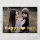 Carte postale moderne de la Saint-Valentin avec votre photo horizontale avec "Joyeuse Journée du Coeur" affichée en gras, feuille d'or. Personnalisez la carte de la Saint-Valentin avec votre nom et l'année. La carte postale de la Saint-Valentin s'inverse pour afficher votre adresse de retour et votre message personnel.