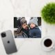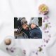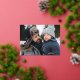 Carte postale mignonne avec "Joyeux Noël" en bas de la carte dans un script manuscrit en feuille d'or. Personnalisez la carte postale de Noël avec votre photo horizontale et votre nom de famille. La carte postale des fêtes de papier s'inverse pour afficher votre adresse de retour, une photo supplémentaire et un message personnalisé.