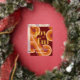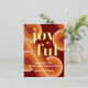 Carte de voeux de Noël classique contemporaine avec rouge clair et foncé, corail et pastel pêche orange motif abstrait couleur orange avec véritable feuille d'or JOIE texte de souhait. Avec place pour customiser ou personnaliser le texte sur le devant, le nom de famille (ou les noms individuels) et un message de salutation de saison personnalisable à l'arrière de la carte.