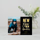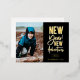 Nouvel an Nouvelles aventures, carte postale de papier photo de vacances. Caractéristiques de la typographie moderne chic en papier noir avec une seule photo sur le devant.