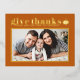 BON THANKSGIVING ! Envoyez des salutations Thanksgiving à votre famille et à vos amis avec cette photo personnalisable Thanksgiving carte postale. Il présente une typographie rétro et audacieuse avec un accent citrouille. Personnalisez en ajoutant vos photos, noms et autres détails. Cette feuille d'or Thanksgiving carte postale est disponible en d'autres couleurs et en carton.