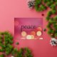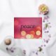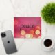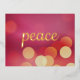 Une carte de classe avec un charme intemporel. Un simple message de paix en feuille d'or typographie contre un arrière - plan de rouge canneberge avec des billes ou des lumières de bokeh or. Customisez votre message, votre salutation et le nom de la société au verso de la carte postale. Un sentiment agréable pour la saison des Fêtes.
