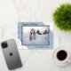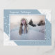 Unique, classe, tendance, joli et décoratif Noël de Noël et Bonne Année Carte de voeux. Avec place pour customiser ou personnaliser avec une photo, nom de famille ou noms, et le texte de votre choix. Motif festif d'étoiles scintillantes sur un arrière - plan pastel de couleur blanche et bleue glacée d'hiver. Et une saison personnalisable saluant poème sur le côté arrière de la carte, y compris votre adresse de retour, ville, code postal et état.