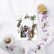 Joli accueil de Noël rustique, avec un cadre de photo en forme d'arc et un beau texte en papier à l'avant, avec adresse de retour et un message de vacances doux à l'arrière !