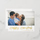 Heureux Hanoukka ! Envoyez vos souhaits à votre famille et à vos amis avec cette carte postale Hanoukka personnalisable en feuille d'or. Il dispose de calligraphie moderne. Personnalisez en ajoutant des noms et une photo. Cette feuille d'or Carte de script Happy Hanoukka est disponible dans d'autres cartons.