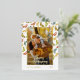 Carte unique, classe, tendance, joli et décorative de Bon thanksgiving de saison de bienvenue. Avec de la place pour customiser ou personnaliser avec une photo, nom ou nom de famille, et le texte de votre choix sur un rouge rouille, jaune moutarde, vert, bleu turquoise et véritable feuille d'or couleur automne laisse motif. Et une saison personnalisable saluant poème sur le côté arrière de la carte, y compris votre adresse de retour, ville, code postal et état.