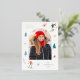 Carte postale de vacances en feuille de fête avec votre photo voûtée entourée de skieurs colorés, étoiles en feuille d'or et pins. Personnalisez l'avant de la carte postale de Noël avec votre salutation personnalisée (actuellement indiquée comme "Joyeux Noël"), le nom de famille et l'année en papier doré. La carte postale de vacances sur le thème du ski s'inverse pour afficher votre adresse de retour et votre message personnalisé.