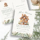 Carte postale de vacances animée. Annoncez votre nouveau domicile pendant cette période des fêtes avec notre charmante carte postale « Nouveau chez-soi pour les fêtes ». Avec ses trois adorables maisons en pain d'épice aquarellées et ses branches botaniques de verdure hivernale élégantes dans des verts riches, des crèmes et des beiges, cette carte postale est un moyen idéal de partager votre excitation avec vos amis et votre famille. Sa simplicité et son élégance en font un choix idéal pour répandre facilement la joie des fêtes. Laissez cette carte postale charmante faire partie de vos célébrations festives, et découvrez comment notre collection complète de fêtes peut apporter de la sophistication et de la joie à chaque aspect de votre saison des fêtes. Répandez la magie des fêtes avec une carte postale qui en dit long.