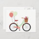 Magnifique vélo de printemps avec des ballons et des tulipes dans le panier. Air chaud et ensoleillement. Joli thème de couleurs.