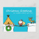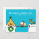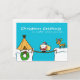 Une carte postale de Noël sucrée avec arrière - plan bleu et neige. Il est accompagné d'un joli dessin de Père Noël et de rennes qui tentent de livrer des cadeaux à une tente en traversant un pont en bois. Le message dit "voeux de Noël où que vous soyez". La carte postale est adaptée à vos proches ou amis qui restent actuellement loin et vous souhaitez leur faire savoir que vous pensez à eux à Noël, peu importe la distance entre eux.