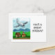 Prenez le vol avec cette carte postale enchanteresse avec un charmant avion dessiné à la main qui s'envole gracieusement sur un paysage serein. L'ombre douce et feutrée donne vie à ce décor enchanteur, qui présente des montagnes majestueuses, des maisons douillettes nichées au milieu d'une végétation luxuriante, et un ciel bleu sans limite parsemé de nuages moelleux.