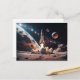Un vaisseau-fusée décolle d'une planète extraterrestre avec des objets célestes en arrière - plan