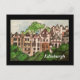 Magnifique peinture aquarelle colorée (sur carte postale) de Ramsay Garden, les maisons emblématiques à côté du château d'Édimbourg. Il a une frontière noire.