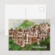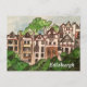 Magnifique peinture aquarelle colorée (sur carte postale) de Ramsay Garden, les maisons emblématiques à côté du château d'Édimbourg.