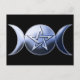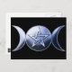Symbole de déesse triple, trois phases lunaires. Pleine lune avec pentagramme, lune qui se cire et qui se dégrade. Mystique, bleu translucide sur noir. Femme, Mère, jeune fille et crone. Cadeau pour Wiccans et néo-païens.