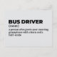 Une carte postale humoristique de définition de conducteur de bus public célébrant ceux qui font bouger la ville. Une combinaison parfaite d'humour et d'appréciation pour les professionnels du transport qui travaillent dur. Excellent choix pour les cartes postales de conducteurs de bus drôles et les cadeaux pour les navetteurs.