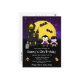 Cette invitation d'anniversaire amusante et effrayante présente des vampires mignons à côté d'une maison hantée de travers. En arrière-plan, il y a une pleine lune avec des chauves-souris et un ciel nocturne violet avec des étoiles. Le texte combine des polices décoratives et serif pour un look élégant et moderne. C'est parfait pour Halloween.