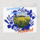 Delft Blue Motif et Tulip Bulb Fields Salutations de Holland Postcard. Vieux style Hollandais Delft Blue (Delfts Blauw) motif avec photo Holland entièrement personnalisable (changer et télécharger votre propre image!) paysage de fleurs de tulipe jaune avec moulin et texte entièrement personnalisable "Greutages de Holland" carte postale souvenir. Ce beau cadeau de carte postale Holland tulips personnel est entièrement personnalisable, ajoutez votre image et votre texte!