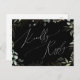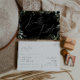 Plongez dans un monde d'enchantement avec notre carte de réponse RSVP à motif or noir et verdure fantaisiste pour demande de chanson, parfaite pour votre mariage botanique de printemps bohème. Ornée d'eucalyptus vert sauge et d'accents dorés, cette carte RSVP dégage de l'élégance et une fantaisie moderne. Imaginez vous promener dans un jardin d'été magique, entouré des sons apaisants de la nature. Le design capture sans effort le charme rustique de l'automne avec ses teintes vert clair, évoquant la beauté de la saison changeante. Avec une touche de sophistication minimaliste et un flair bohème classique, les détails en faux or brillant ajoutent une touche de glamour et de romance. Complète avec une atmosphère de conte de fées gracieux, cette carte RSVP dégage de la classe et met en valeur la splendeur naturelle de l'automne. N