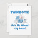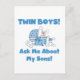 La fière nouvelle maman et papa de bébé jumeaux va adorer ce design mignon avec deux lapins garçon et le texte bleu qui dit "Twin Boys! Posez-Moi Des Questions Sur Mes Fils !". T-shirts Twin Boys, cartes, boutons, magnets, sacs, mousepads, et plus !
