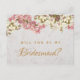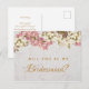 Cette carte postale de proposition élégante « Voulez-vous être ma demoiselle d'honneur » a un fond marbré et des orchidées roses et blanches sur sa moitié supérieure.
