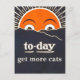 Cette carte postale présente une reproduction d'une affiche vintage du soleil, modifiée avec la phrase "Aujourd'hui, adoptez plus de chats".