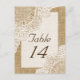 Elégante dentelle blanche sur burlap shabby chic numéro de table mariage carte postale avec dentelle blanche sur lin burlap naturel ou hessian qui couvre deux coins d'un rectangle blanc avec bordure de burlap beige. Texte en marron. Notez que la dentelle et le burlap sont tous "imprimés" et non de vrais tissus. Ce design élégant, chic et romantique, chic et chic, à l'essence rustique, fait partie d'un ensemble mariage et est parfait pour un mariage rustique chic ou occidental printemps, été ou automne/automne avec une palette de couleurs neutres.