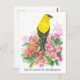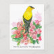 Carte postale mobile ornée d'un oiseau doré jaune vif et noir aux fleurs roses de rhododendron, illustrée d'encre et peinte d'aquarelle. Inspiré par l'oiseau d'Etat et la fleur d'Etat de Washington. Profitez de l'Etat À feuillage persistant ! Vous pouvez modifier le texte avec vos détails.
