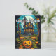 Cette magnifique carte postale présente une maison hantée à thème Halloween après la tombée de la nuit. N'hésitez pas à ajouter votre texte unique et vos adresses au verso de cette carte postale Halloween.