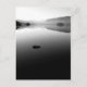 Une seule roche brise la surface lisse de Derwentwater sur cette photo en noir et blanc du lac en hiver.