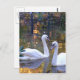 Belle photographie de deux cygnes blancs sur un lac. Customisez cette carte postale en ajoutant un message d'accueil à l'avant et votre propre texte à l'arrière.