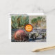 Cette carte postale identifie quatre plantes uniques du désert, notamment l'Agave du désert, le Palmier à vent du désert, le Cactus tonneau et le Cactus Cholla.