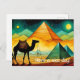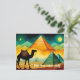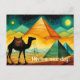 Carte postale de chameau du désert avec pyramides égyptiennes. Personnalisez facilement le message selon vos besoins.