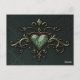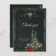Design vintage élégant et romantique. L'arrière - plan vintage vert foncé donne au design une touche intemporelle, tandis que le cadre orné entoure harmonieusement l'image globale. Un grand coeur vert émeraude, orné de délicats accents dorés et incrusté dans une floraison décorative, symbolise l'amour et la connexion du couple. L'accent est mis sur la silhouette dessinée avec art d'une mariée et d'un marié unis dans une danse gracieuse.