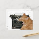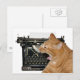 chat tabby orange ou gingembre bâillonnant devant une machine à écrire vintage avec le concept d'un écrivain ennuyeux ou Désolé je n'ai pas écrit mais ma vie est si ennuyeux carte postale