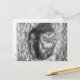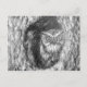 Un hibou hurleur regarde de sa maison dans un arbre creux, avec art imprimé à partir d'un dessin original au charbon de bois, en noir et blanc, par S.Lynnette