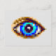Ce dessin en pixels d'un oeil illustre la société numérique et les médias sociaux ainsi que l'iconographie du jeu vidéo.