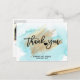 Dites merci à vos invités avec ces jolies, exemplaires uniques, cartes de remerciement en ligne. Faux coup de pinceau doré avec un joli mot de remerciement écriture et cœur au milieu. Parfait pour les mariages sur le thème de la plage, de la destination. Couleurs bleu aqua, turquoise. Personnalisez-les en ajoutant les noms des mariés et la date du mariage ou de l'anniversaire avec photo / image. Le dos de la carte comporte une photo avec un message facultatif