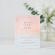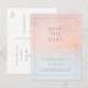 Cette carte postale d'été avec coucher de soleil aquarelle est parfaite pour votre mariage tropical de plage bohème. Conçue avec un style minimaliste, aquarelle corail orange- pêche et bleu poussiéreux, accompagnée d'une typographie simple en or sable rustique. Elle correspondra parfaitement à l'ambiance moderne et bohème de votre mariage de destination côtière.