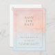 Cette carte postale aquarelle de coucher de soleil d'été pour annoncer la date est parfaite pour votre mariage tropical de plage bohème. Conçue avec une esthétique minimaliste, aquarelle corail orange-pêche et bleu poussiéreux, accompagnée d'une typographie simple et rustique en or sableux. Elle correspondra certainement à l'ambiance moderne et bohème de votre mariage de destination côtière.