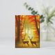 Carte postale sur l'illustration de deux cerfs, un buck et un doe, contre un arrière - plan de bois d'automne, dans les tons brun, jaune doré et orange rouille