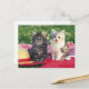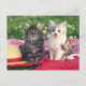 Carte Postale Deux Chatons Assis Sur Une Couverture Rouge