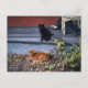 ... vous vous souvenez de cette chanson ? Deux chats, un noir et un orange, jouant par un pas de porche dans la cour avant d'une vieille maison, avec un arrière - plan de brique rouge, moquette et bois bleu gris, plats circulaires, couverture ondulée, élégantes jambes arrondies d'une chaise sans siège. Le chat orange regarde le chat noir, et le chat noir regarde le photographe, ou le spectateur. Dans le jardin, des plantes verts poussent après un long hiver canadien. Les chats sont frisonnants et ludiques aux rayons de soleil du printemps de l'après-midi. J'aime la composition dynamique dans celle-ci - à gauche des chats, il y a beaucoup d'espace, de longues ombres, un sentiment de mouvement dans l'image ; sur la droite des chats, le flux a collecté et commence à se retourner gracieusement sur lui-même, belle énergie et mouvement même dans une photo statique d'un moment unique dans le temps. Photographie originale de l'artiste local M Sylvia Chaume, fin avril 2015, Gatineau (Hull) Québec, de l'autre côté de la rivière d'Ottawa, Ontario, Canada.