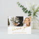 Carte Postale deux photos collage or script merci, mariage